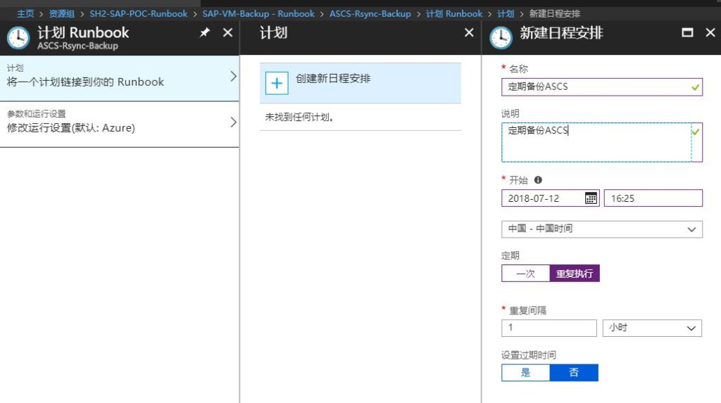 发布后,回到了该Runbook的属性页面,点击【计划】