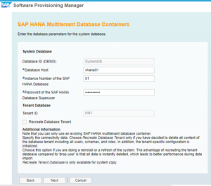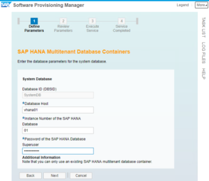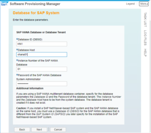 • Instance Number of the SAP HANA DB: 01